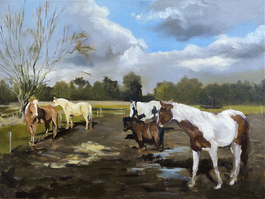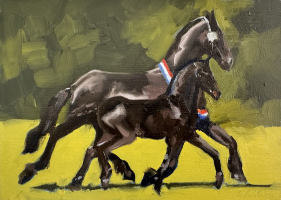 Would you like to have a painted or drawn portrait of your horse, dog or other animal? Then you can give me a commission. I paint animals from life or from sketches and photos that I make myself. I prefer to make the paintings about life size and with a lot of artistic freedom.